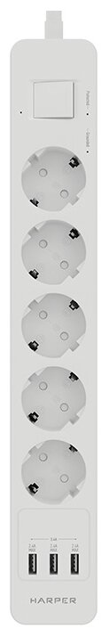Сетевой фильтр с USB зарядкой HARPER UCH-510 / 5 розеток / 3 USB-порта / белый 3 290 ₽