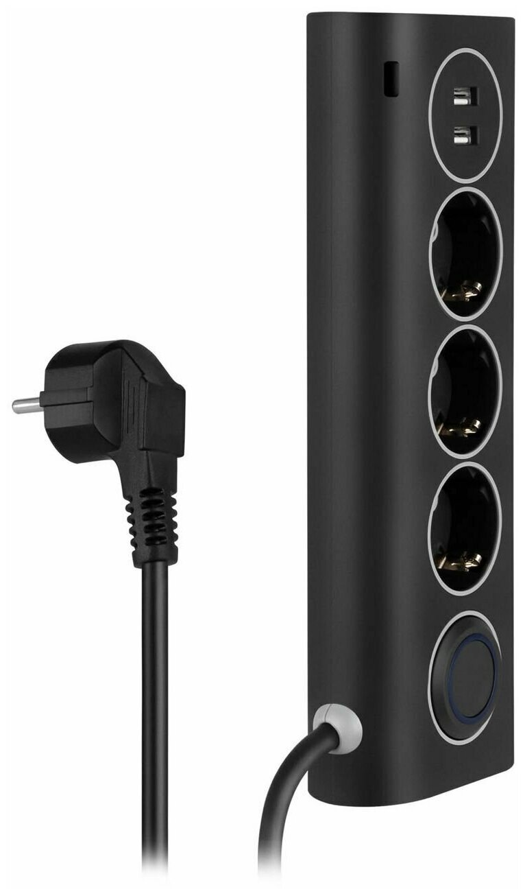Сетевой фильтр Rombica NEO WC3U Black, 2 x USB, 3 x 220V, чёрный, 1.5м 1 650 ₽