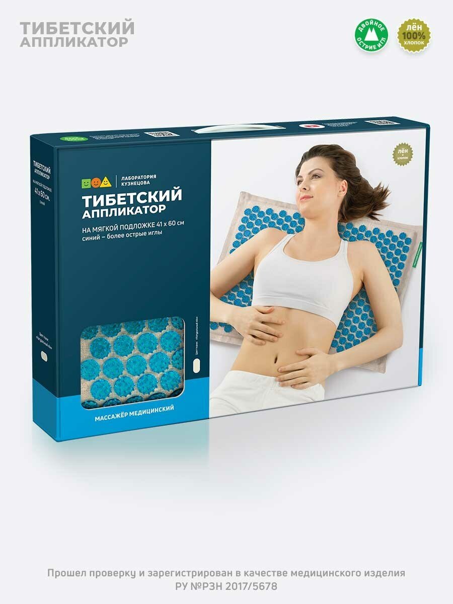 Лаборатория Кузнецова, Массажер медицинский «Тибетский аппликатор» на мягкой подложке, 41х60 см, синий