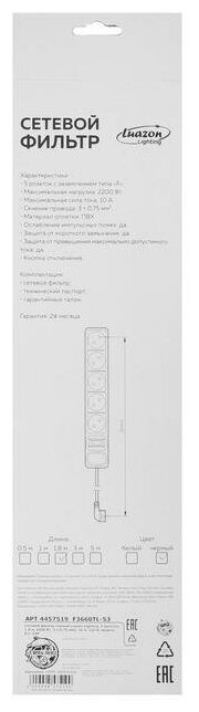 Отзывы на Сетевой фильтр Luazon Lighting, 5 розеток, 1.8 м, 2200 Вт, 3 х 0.75 мм2, 10 А, 220 В, черный (1 шт.)