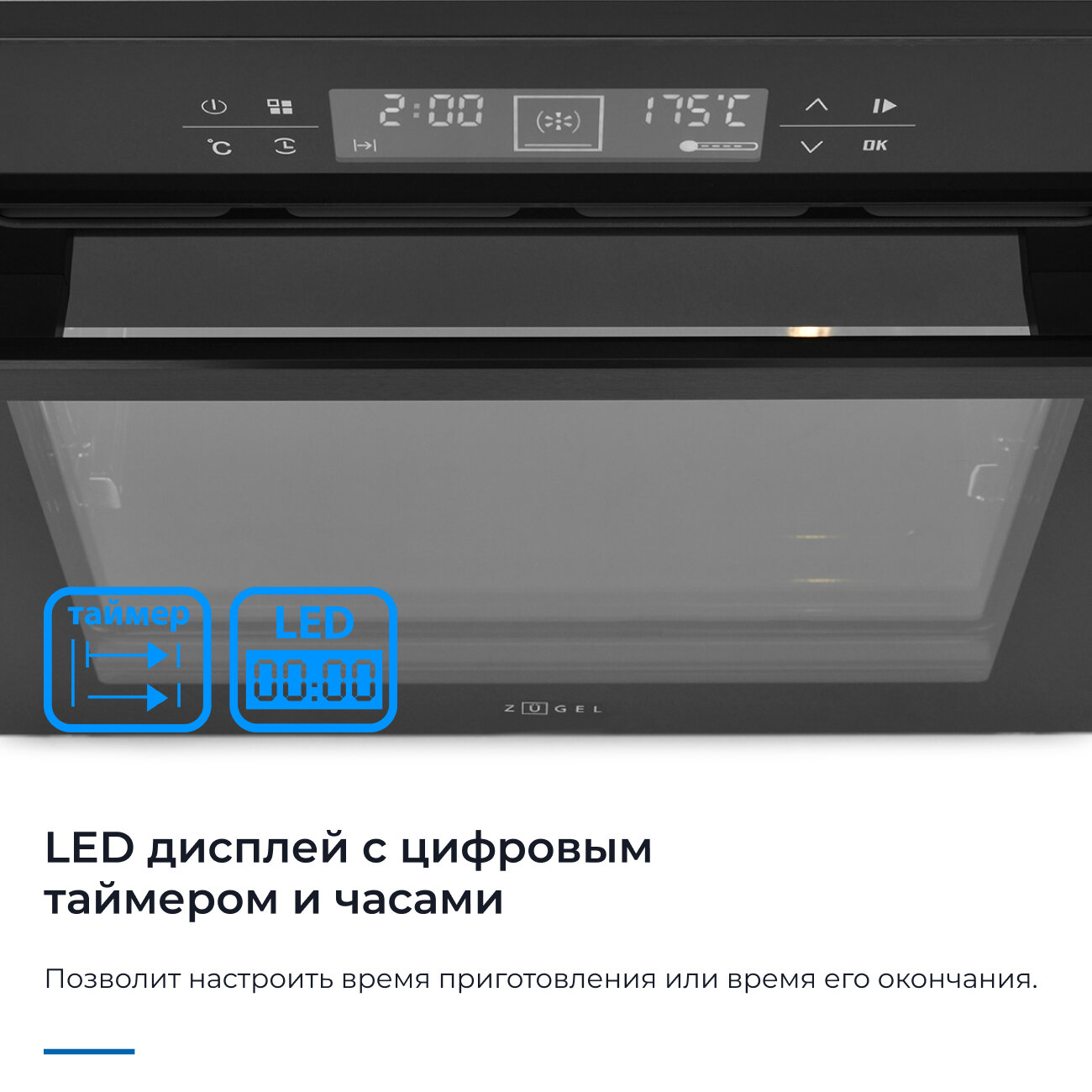 Встраиваемый электрический духовой шкаф ZUGEL ZOE601B, 75 л, с LED-дисплеем, 9 режимами работы, 3D-нагревом, конвекцией, грилем, черный 50 190 ₽