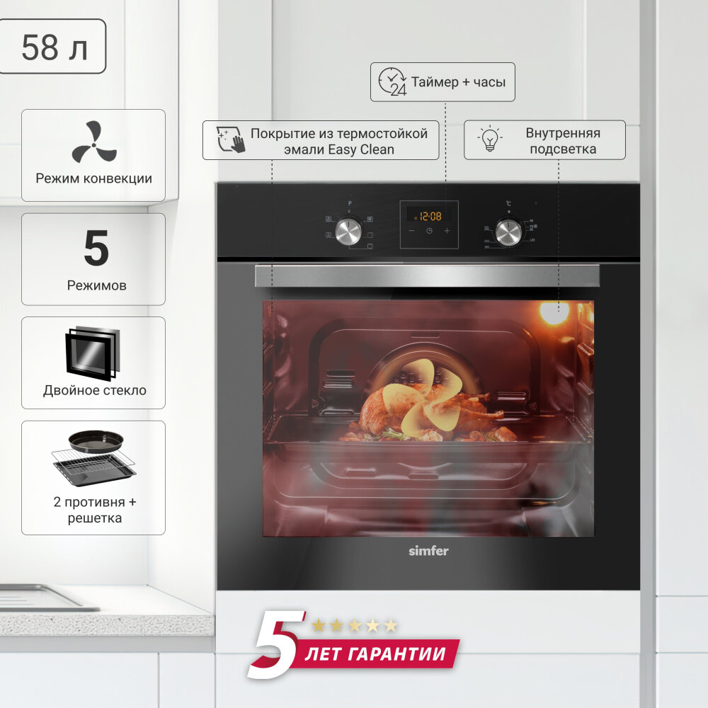 Электрический духовой шкаф Simfer B6ES56022 (5 режимов работы) информация: