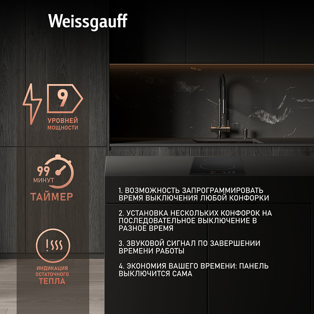 Варочная панель Weissgauff HV 640 BKS, 9 уровней мощности, таймер