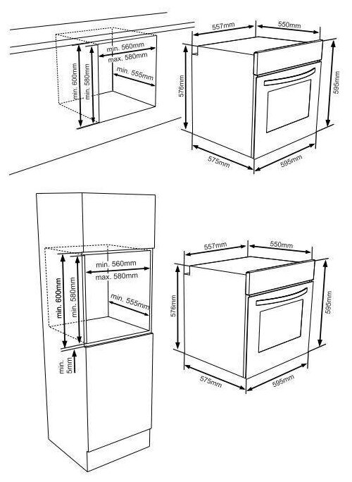 Духовой шкаф встраиваемый LEX EDM 077 C IV, 60 см, с конвекцией, механические ручки, объем 60 л, аналоговый таймер, телескопические направляющие.