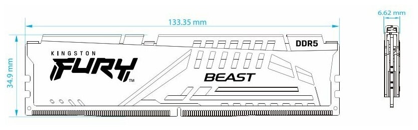 Модуль памяти Kingston 32GB DDR5 5600 DIMM FURY Beast Black Gaming Memory Non-ECC, CL40, 1.25V, 1RX8 , RTL