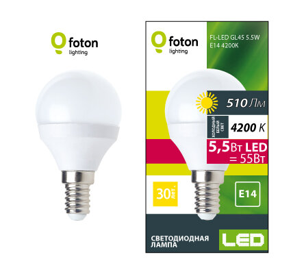 Лампа светодиодная FOTON LIGHTING FL-LED GL45 5.5W E14 4200К информация: