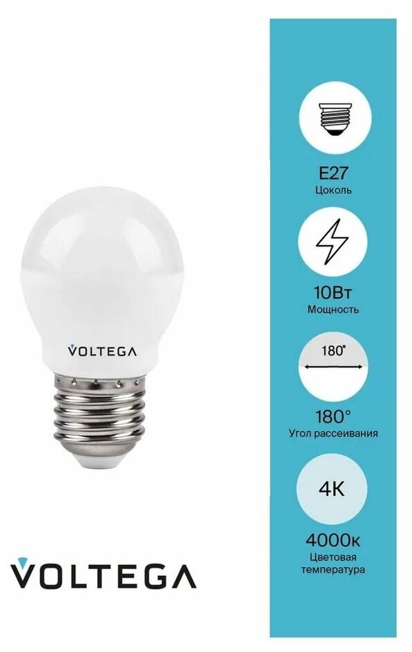 Лампочка светодиодная Voltega Simple Globe 8456, Нейтральный белый свет, E27, 10 Вт, 1 шт. информация:
