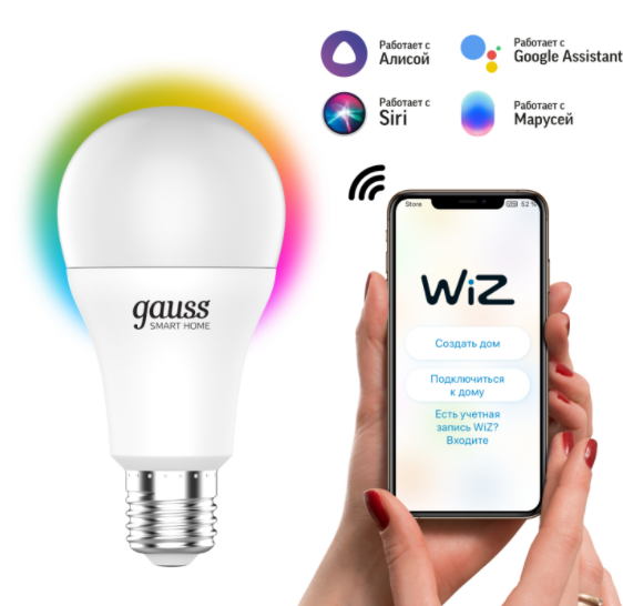 Умная Wi-Fi лампочка Gauss Smart Home А60 8,5W 806лм E27 RGBW, управление голосом/смартфоном