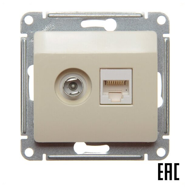 Розетка компьютерная + телевизионная 2-м Glossa RJ45 кат.5E + TV механизм беж. GSL000289 Schneider Electric