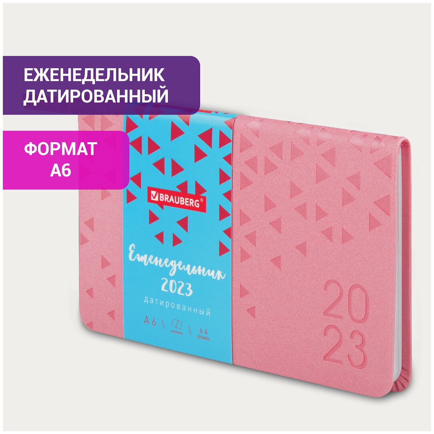 10 цен на Еженедельник датированный 2023, А6, 64л., кожзам, Brauberg "Glance", ляссе, розовый