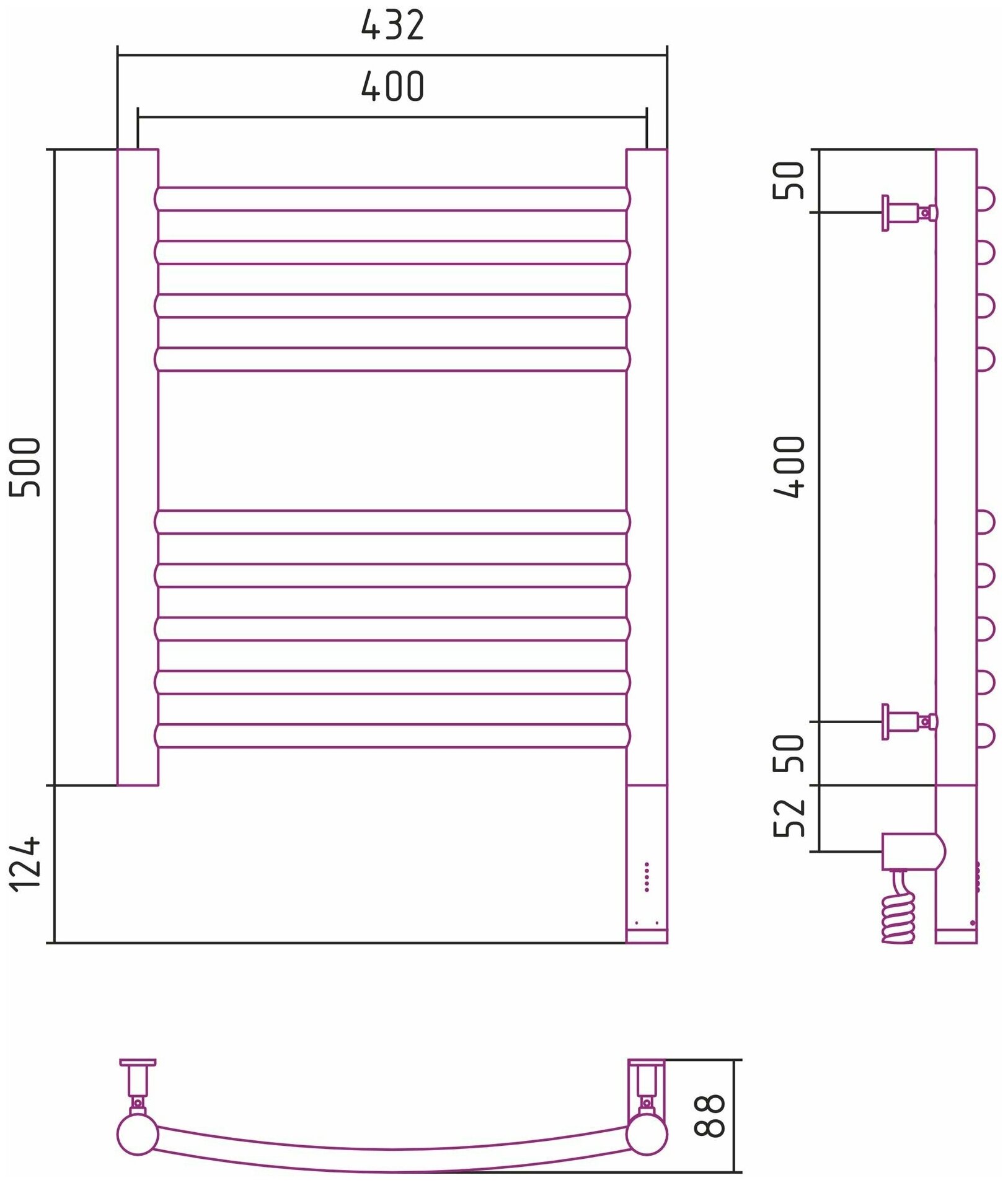 Полотенцесушитель электрический Сунержа Богема 3.0 выгнутая 500х400 МЭМ правый Без покрытия информация: