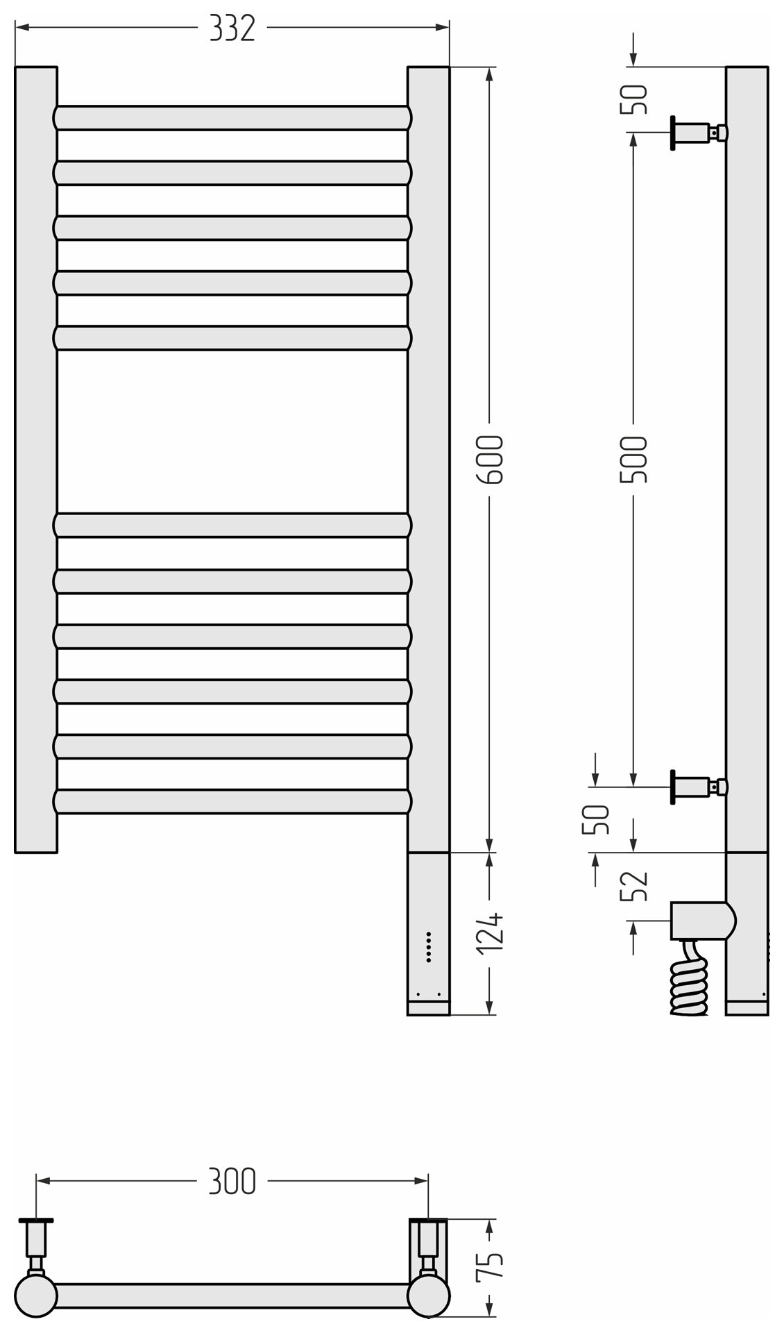 Полотенцесушитель электрический Сунержа Богема 3.0 прямая 600х300 МЭМ правый Состаренная бронза информация: