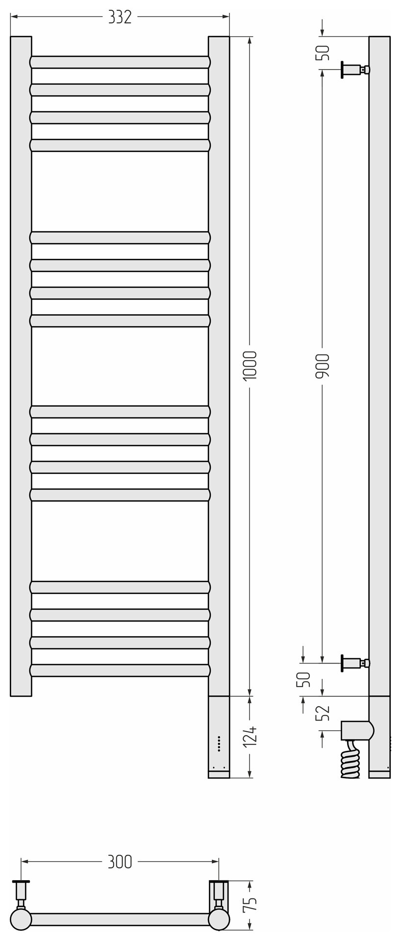 Полотенцесушитель электрический Сунержа Богема 3.0 прямая 1000х300 МЭМ правый Матовый белый информация: