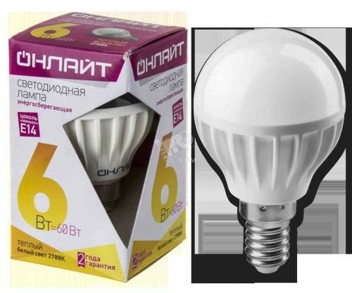 Лампа светодиодная онлайт 71643, E14, G45, 6 Вт, 2700 К информация:
