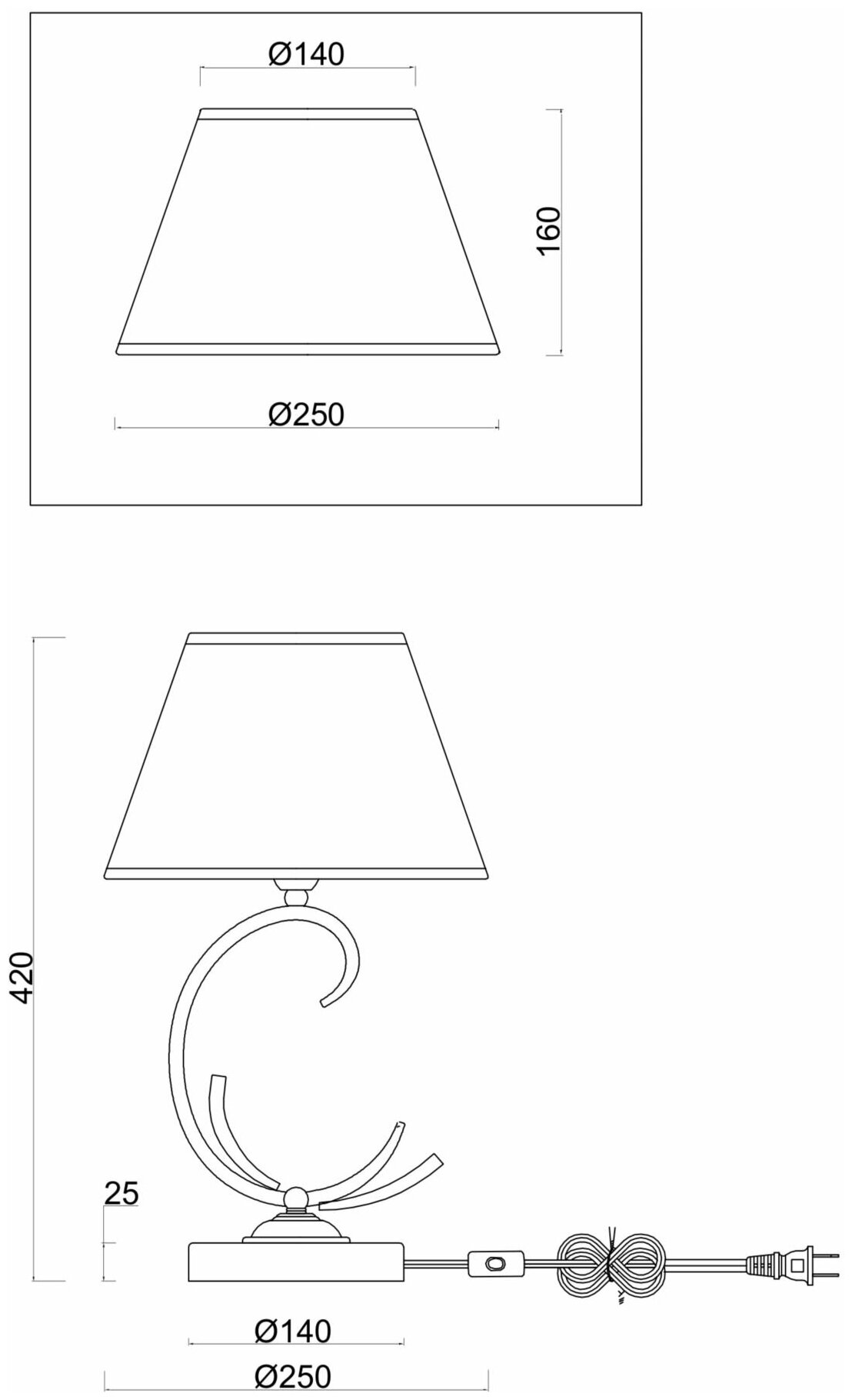 | Диаметр плафона/абажура | 25 см |