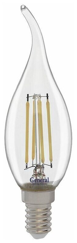General филамент свеча на ветру E14 7W 4500K 4K 35x118 (нитевидная), прозр. 647200