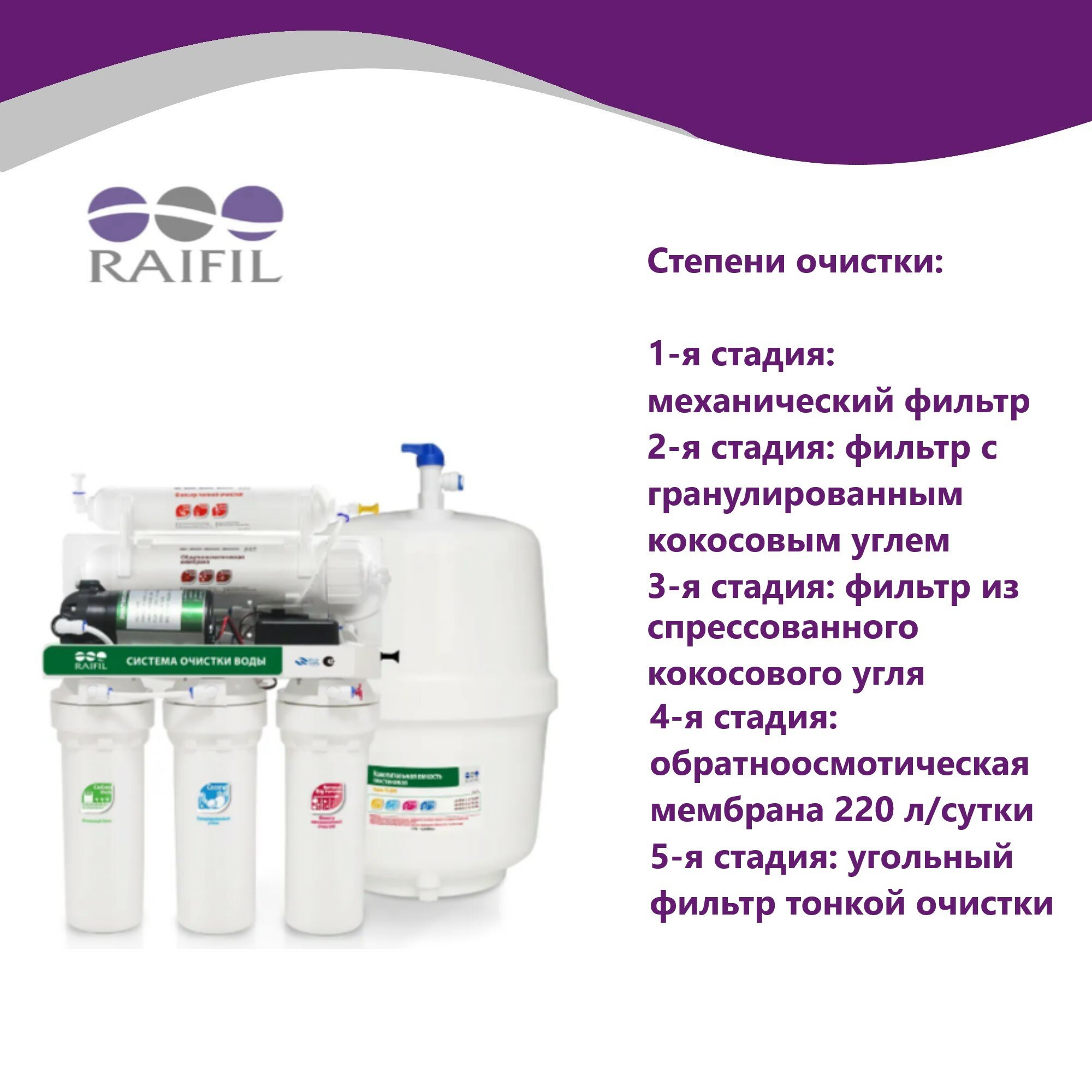 Фильтр под мойкой RAIFIL RO808-550BP-EZ информация:
