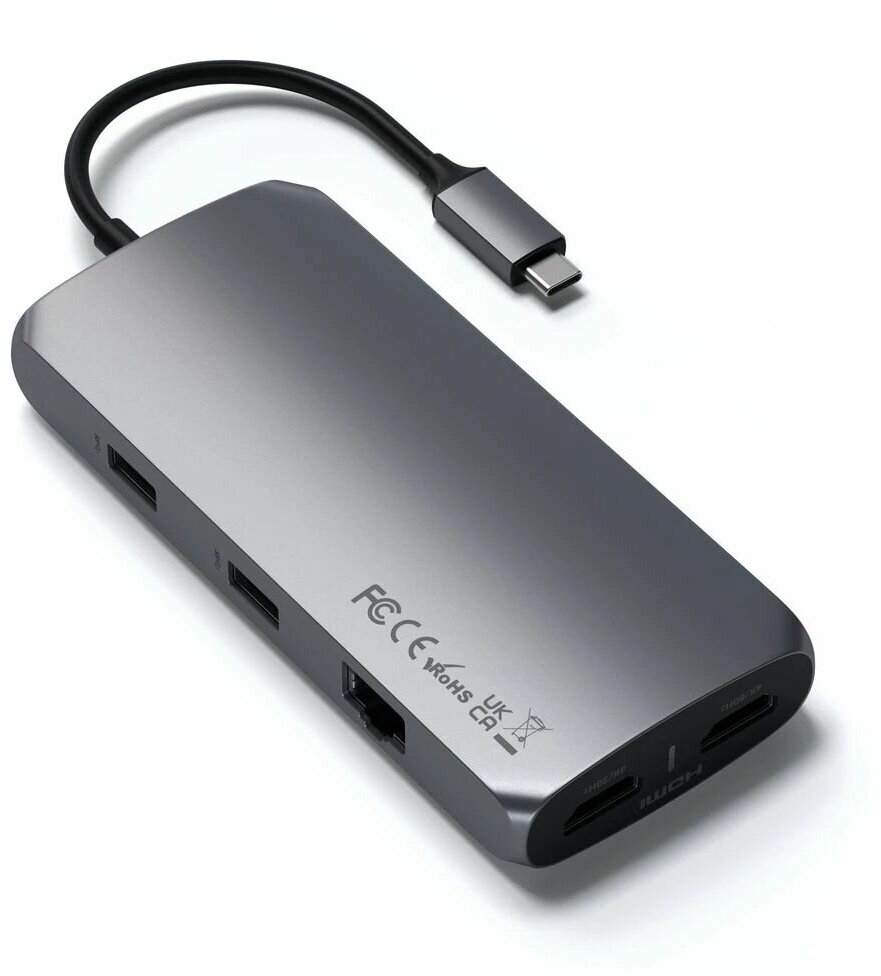 USB-хаб Satechi Type-C Multiport MX Adapter (2xUSB 3.0, 2xUSB Type-C, 2xHDMI, RJ-45, SD, micro-SD, Mini jack), Серый космос Док-станция ST-UCMXAM