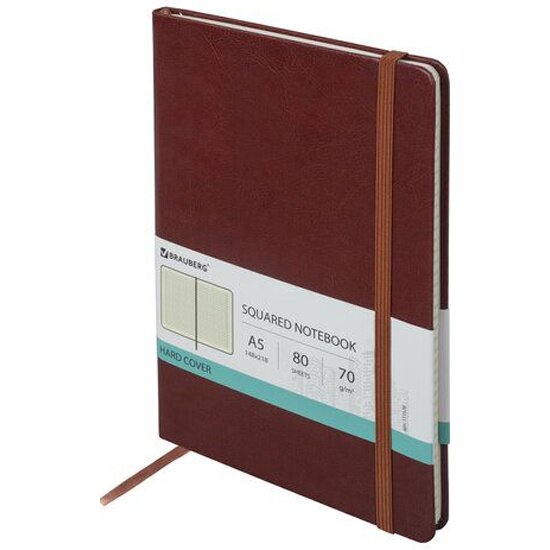 Блокнот А5 (148x218 мм), BRAUBERG "Metropolis Special", под кожу, 80 л., резинка, клетка, коричневый, 111578 (цена за 1 ед.товара)
