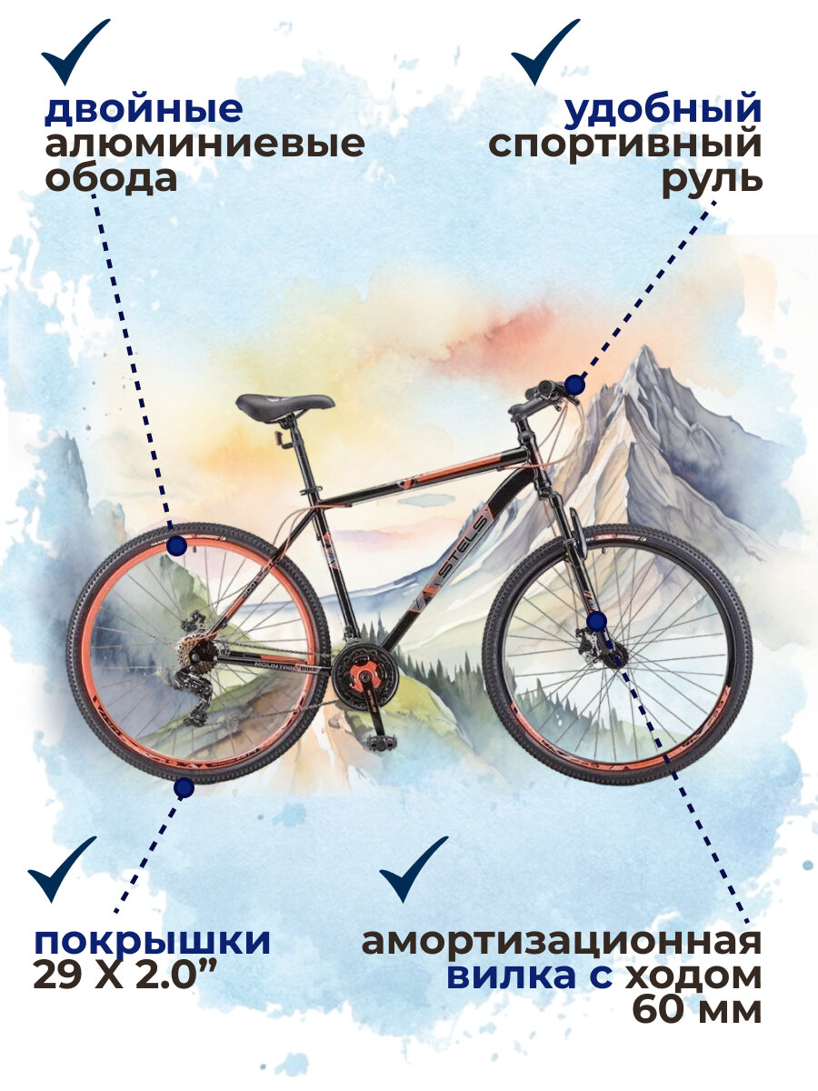 Велосипед горный с колесами 29" Stels Navigator 900 D F020 черно-красный 21 скорость, рама 19" информация: