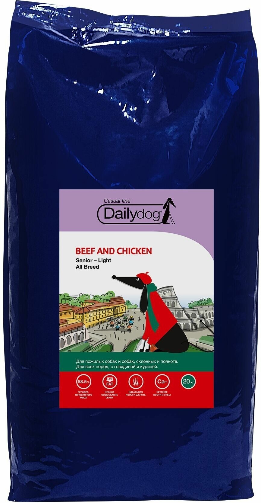 Dailydog Casual line Senior-Light All Breed Beef and Chicken - Сухой корм для пожилых и склонных к полноте собак всех пород, с Говядиной и Курицей (20 кг)