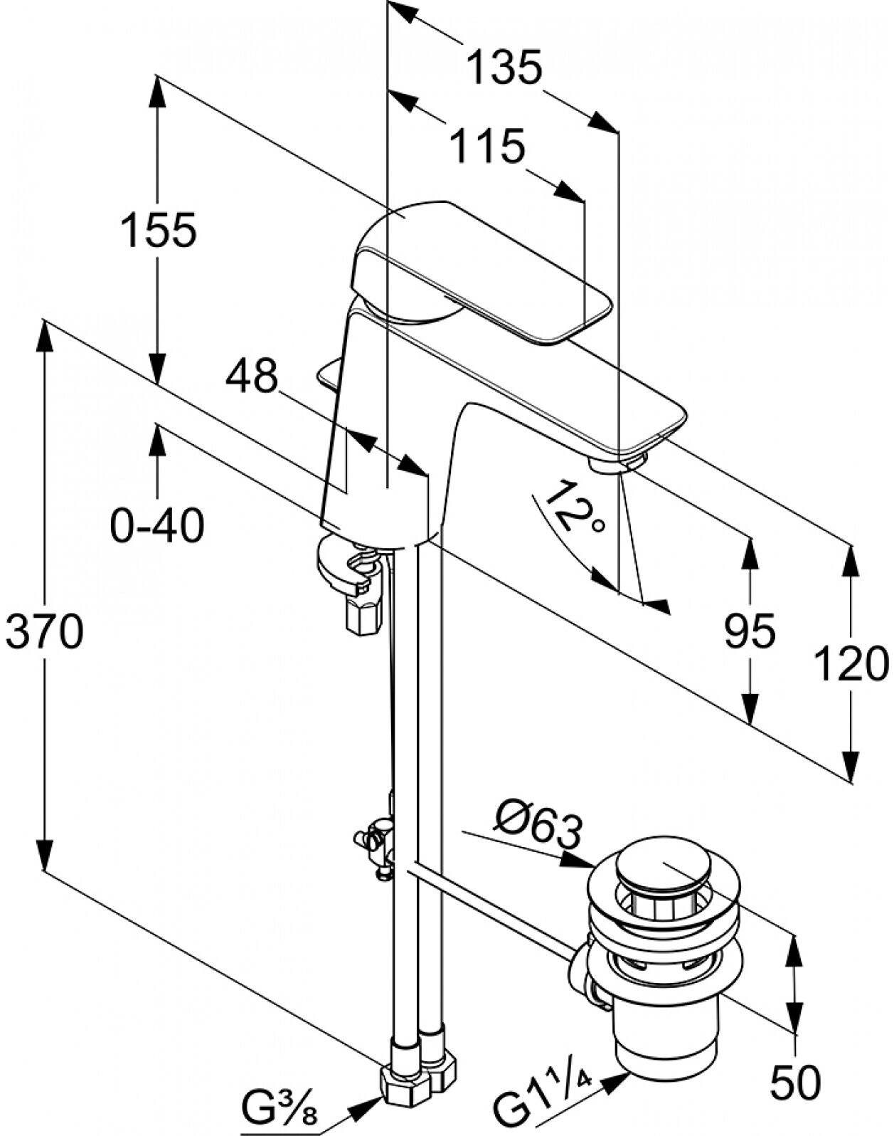 Смеситель для раковины (умывальника) KLUDI Pure&Easy Care 37284 0565, рычажный