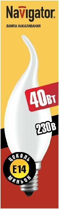 Лампа накаливания свеча на ветру Navigator E14 (е14) 40W (Вт) матовая 388lm 220V 35x120 94334 NI-FC-40-230-E14-FR