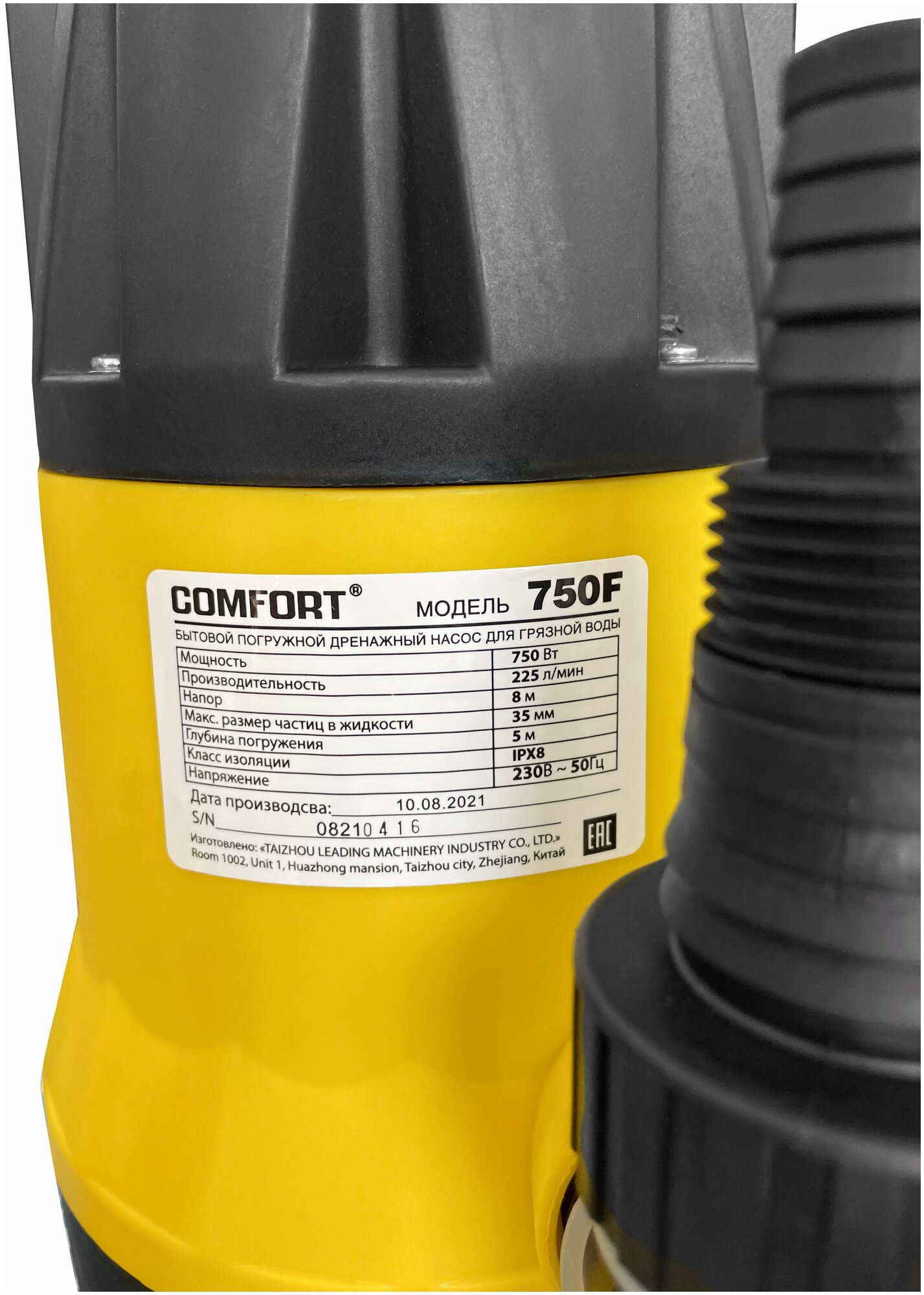Дренажный насос COMFORT 750 F для грязной воды (поплавок, 220В) информация:
