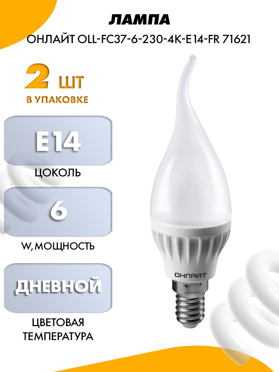 10 цен на Лампа светодиодная онлайт 71621, E14, FC37, 6 Вт, 4000 К