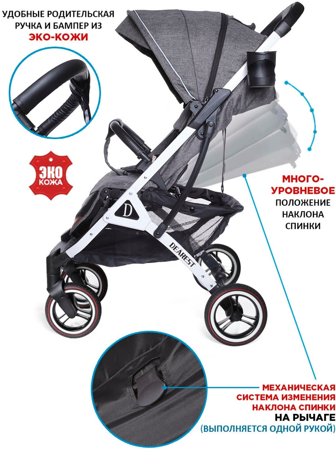 Отзывы на Коляска прогулочная Dearest 819 PLUS модель 2023, с механической спинкой, большим капюшоном, накидкой для ног, полная комплектация, белая рама (серый)