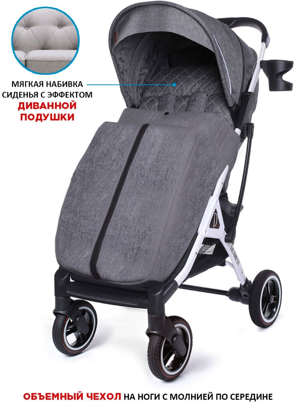 Коляска прогулочная Dearest 819 PLUS модель 2023, с механической спинкой, большим капюшоном, накидкой для ног, полная комплектация, белая рама (серый) информация: