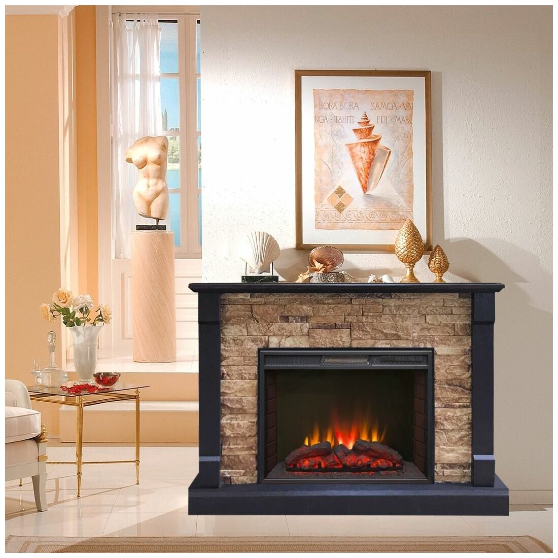 Электрокамин RealFlame Saphir 25.5, 6 цветов пламени, сенсорная панель (электрический камин, электроочаг)