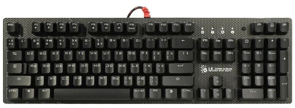 Игровая клавиатура Bloody, черный, кириллица+QWERTY, с подсветкой, мембранная