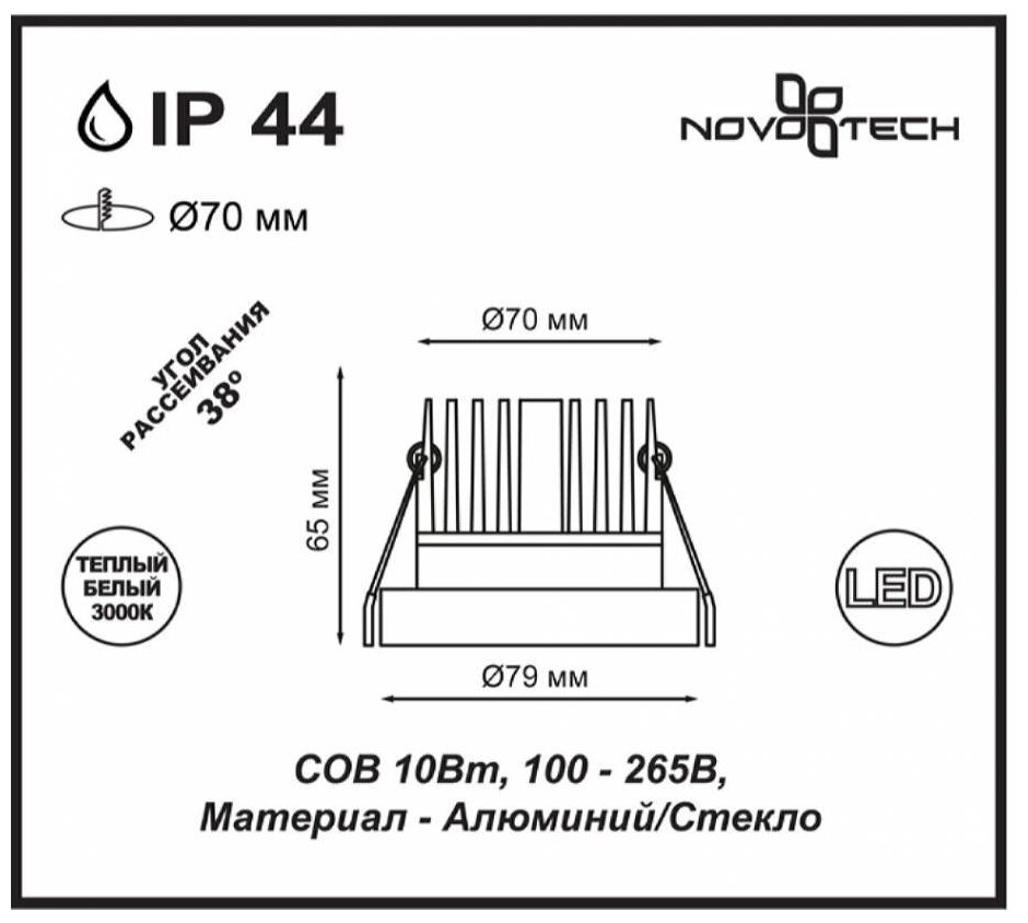 Светильник светодиодный встраиваемый Novotech 357909 METIS информация: