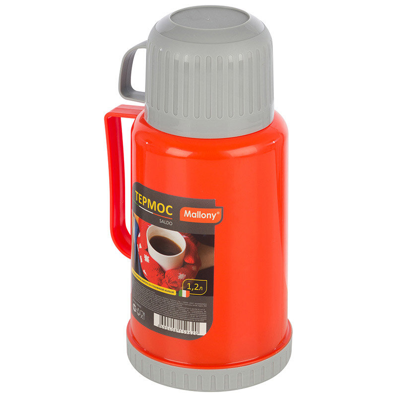 Термос SALDO 1,2л, стеклянная колба, пластик.корпус, 2чашки, 8235 Mallony