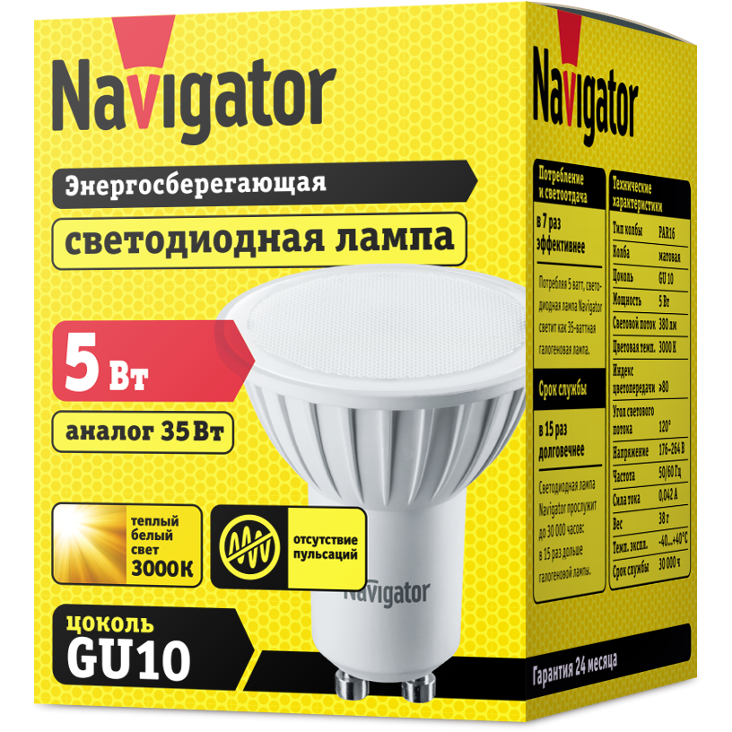 Отзывы на Светодиодная лампа NAVIGATOR NLL-PAR16-5-230-3K-GU10 5Вт 3000К 170-260В 94264 202701