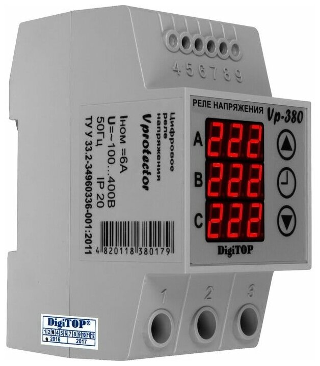 Реле контроля напряжения VP-380В 6А DigiTOP информация: