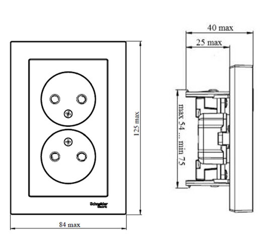 Розетка двухместная Systeme Electric Atlas Design без заземления в сборе 16А