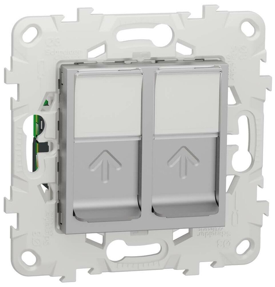 Розетка компьютерная Schneider Electric Unica NEW NU542030 скрытая установка алюминий модули RJ45 cat 5 и RJ45 cat 5е UTP