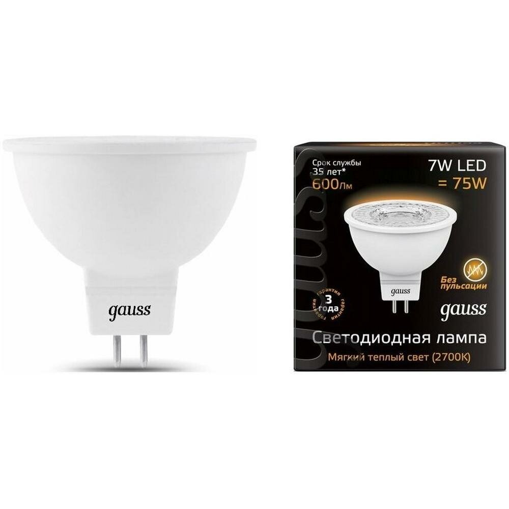 Отзывы на Лампа светодиодная Black 7Вт MR16 3000К тепл. бел. GU5.3 600лм GAUSS 101505107