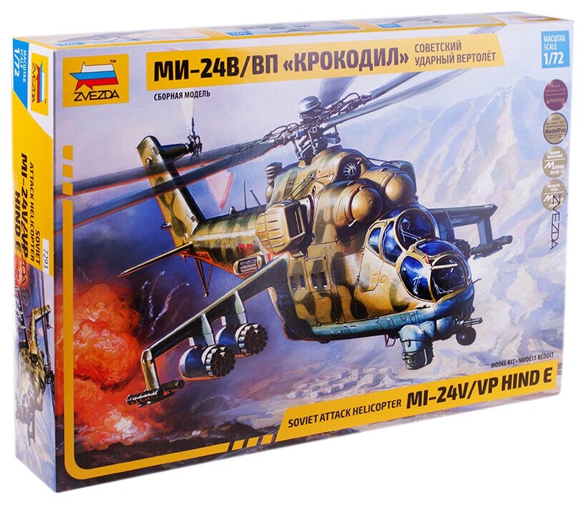 Сборная модель «Советский ударный вертолёт Ми-24 «Крокодил», Звезда, 1:72, (7293)