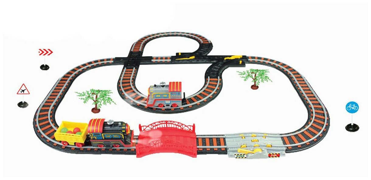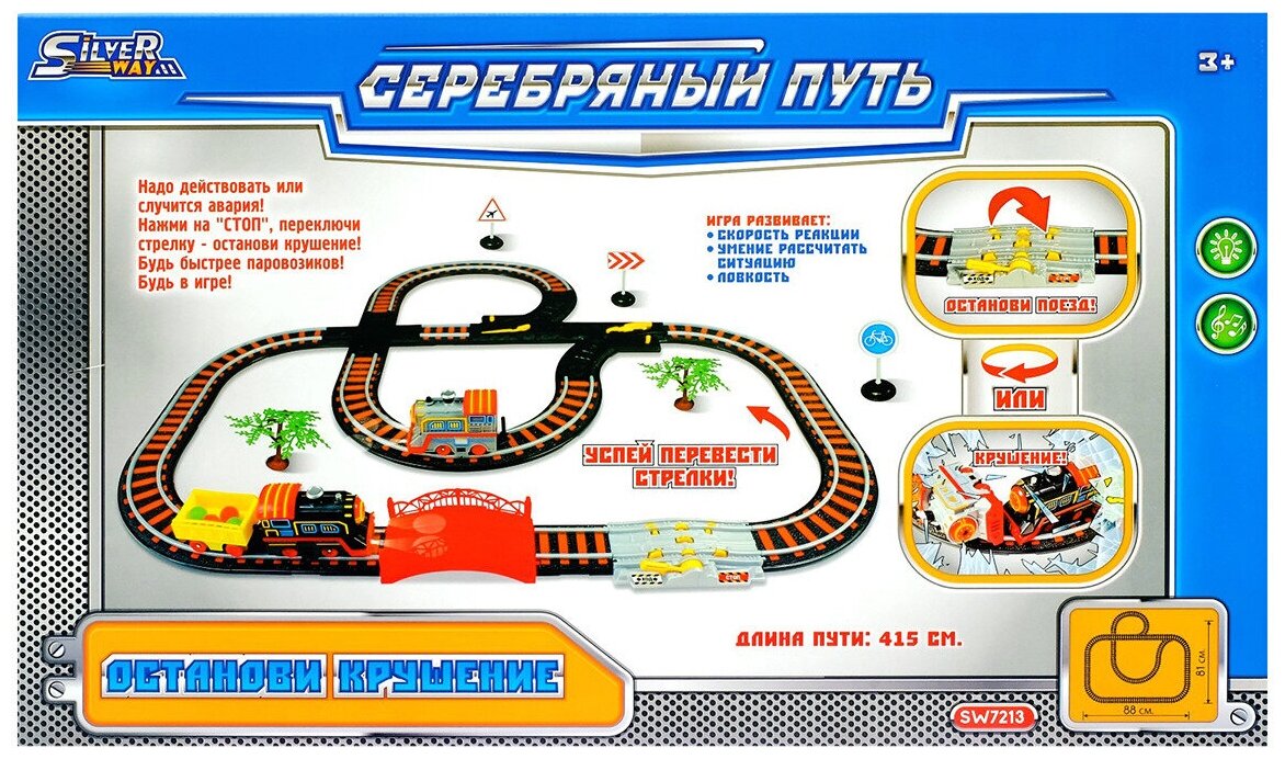 Железная дорога "Останови крушение", 2 поезда,ж/д стрелка, работает от батареек, свет и звук 3576246 информация: