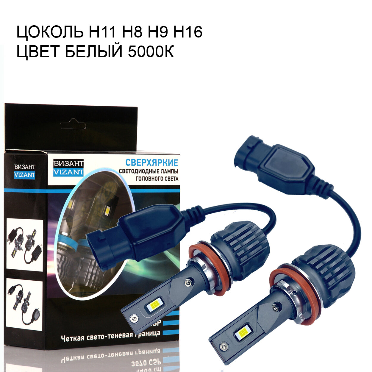 10 цен на Светодиодные лампы Vizant D20 цоколь H11 CSP 3570 Philips 24W 4400lm 5000k (2 шт.)