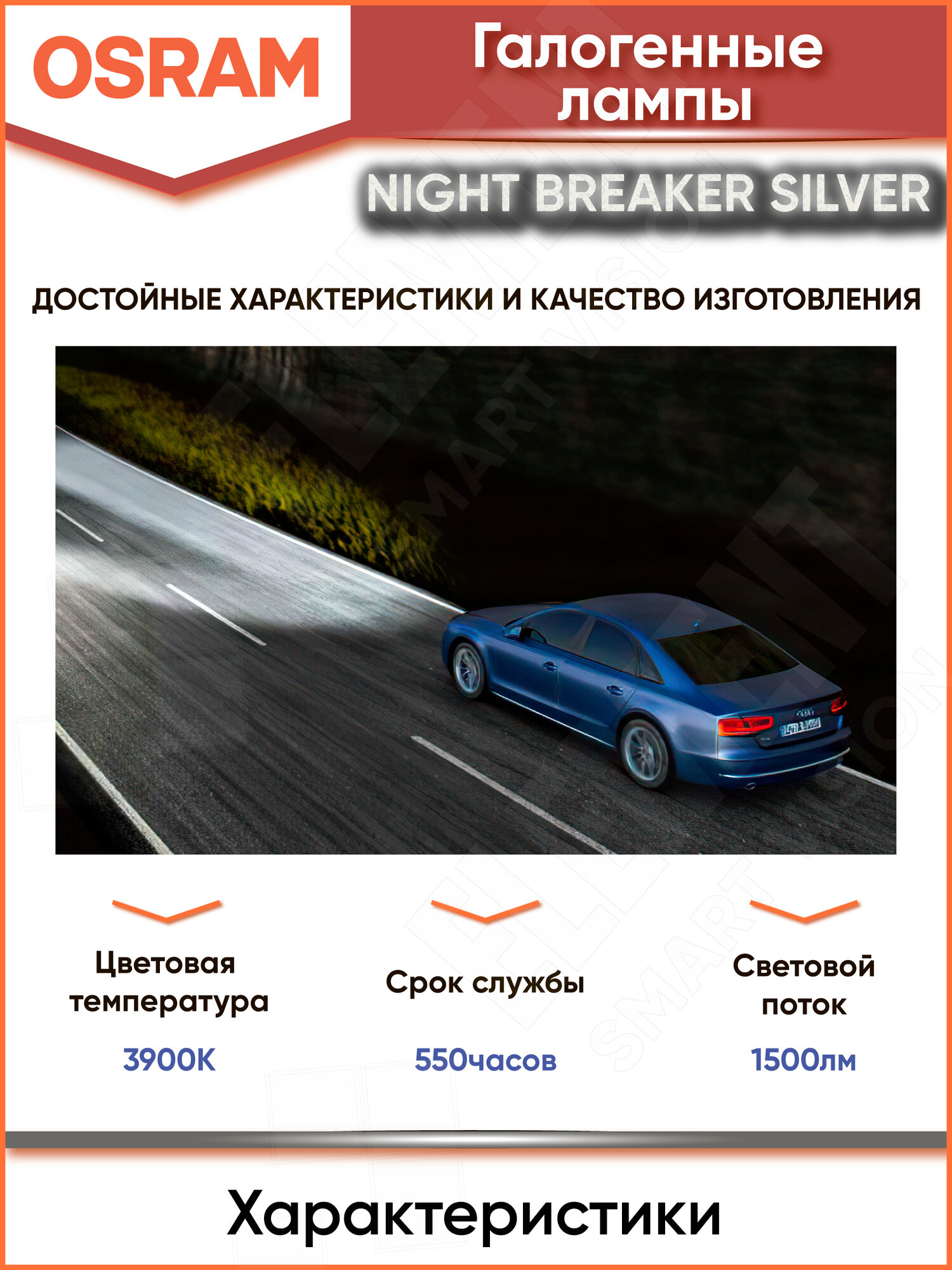 Лампа автомобильная галогенная Osram NIGHT BREAKER SILVER H7 64210NBS-HCB +100% 12V 55W 2 шт. информация: