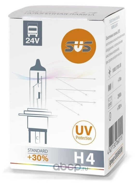 Отзывы на SVS Автолампа галогенная H4 24V 75/70W P45T Standard +30% 0200089000