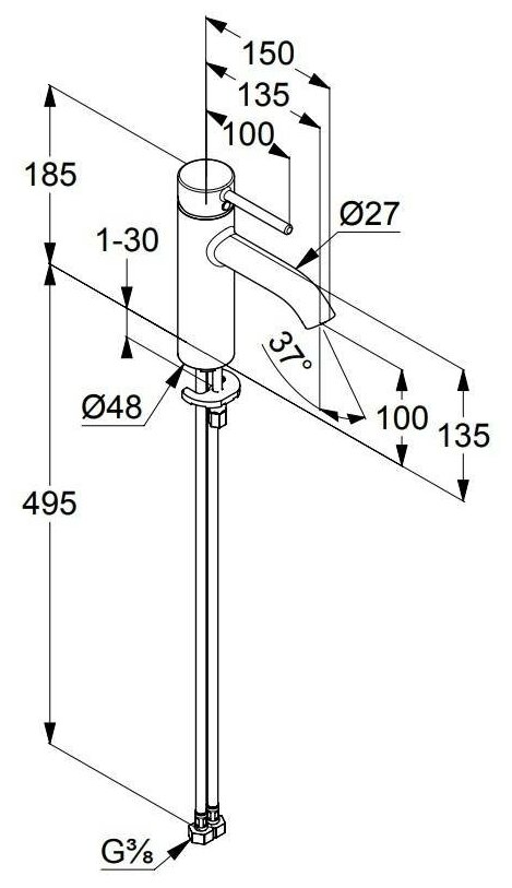 Смеситель для раковины (умывальника) KLUDI Bozz 38272 0576 однорычажный