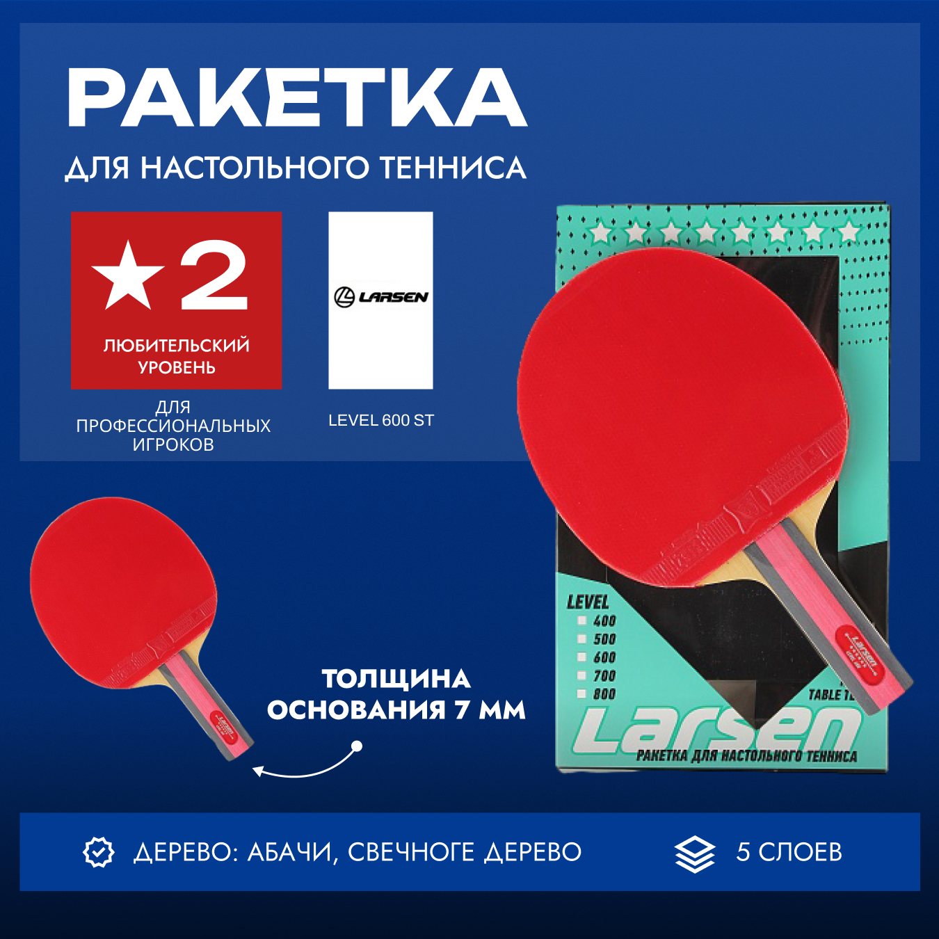 Мы выбрали 10 лучших цен на Ракетка для настольного тенниса Larsen Level 600 ST. Перед тем как купить Ракетка для настольного тенниса Larsen Level 600 ST посмотрите найденные предложения из Яндекс Маркета и других сайтов на основе XML фидов.