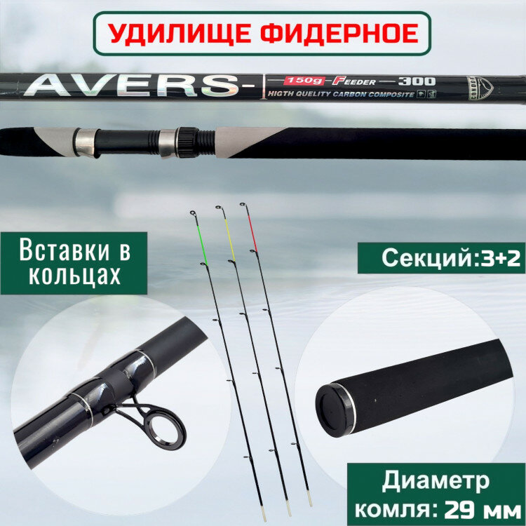 Удилище фидерное Condor Avers Feeder длина 3,00 м, тест до 150 гр штекер., композит информация: