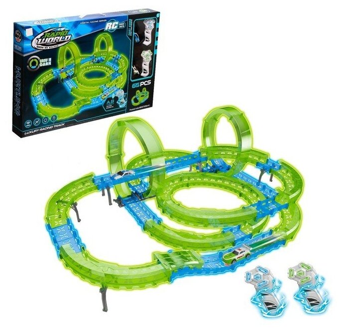 10 цен на Автотрек КНР Rapid World, радиоуправление, свет, 65 деталей, пластик, в коробке (6688-610)