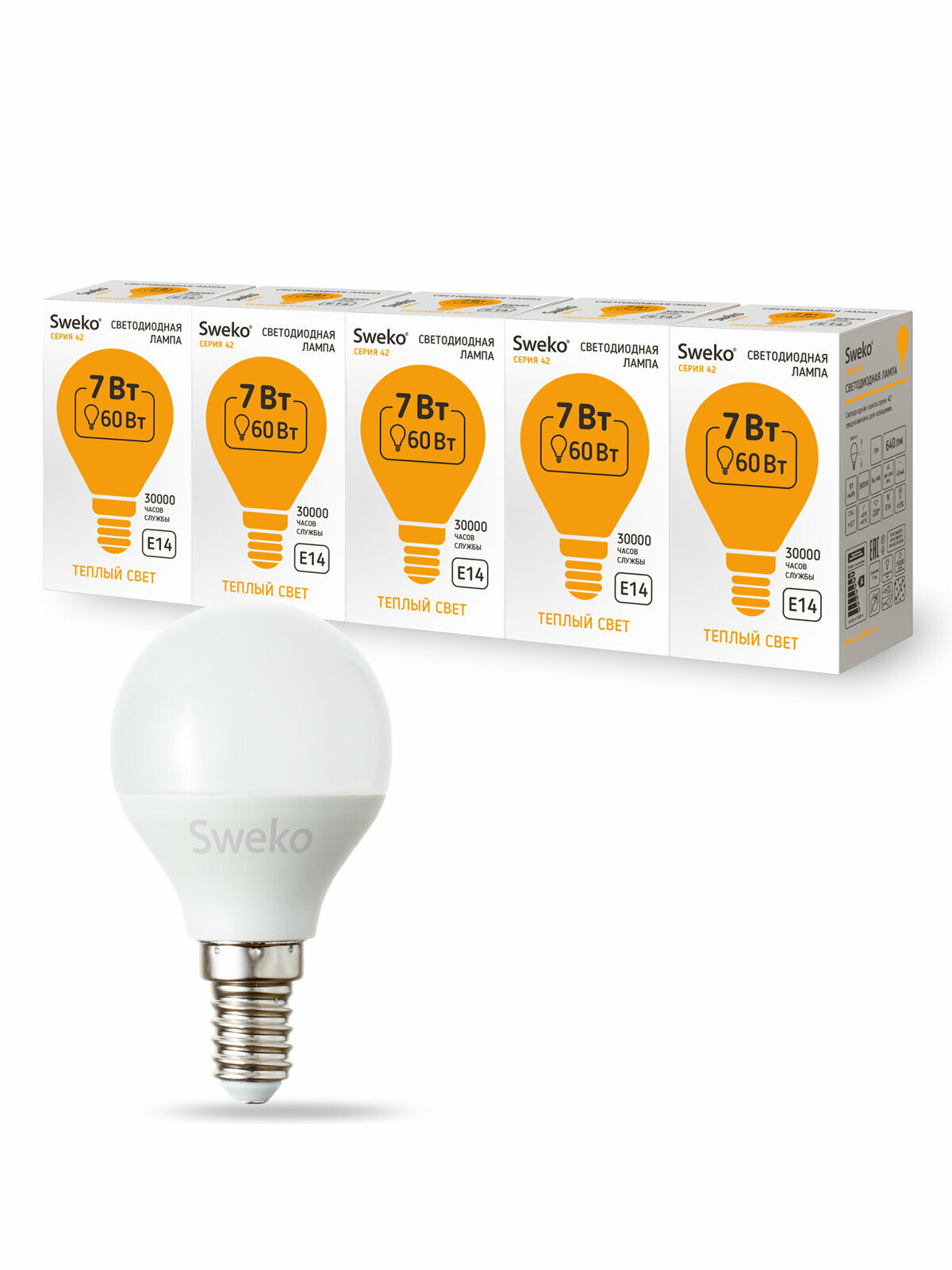 10 цен на Комплект из 5 штук. Sweko Светодиодная лампа "Шар" матов G45 E14 7W(640lm) 3000K 81х45